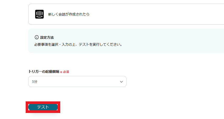 1.Intercomで新しい会話が作成されたらkintoneに会話情報をタスクとして追加するフローです。