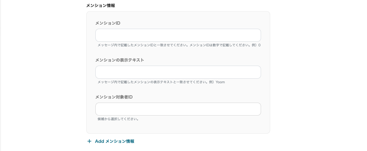 メッセージにメンションやファイルの添付を行いたい場合は、注釈を参照して設定してください。