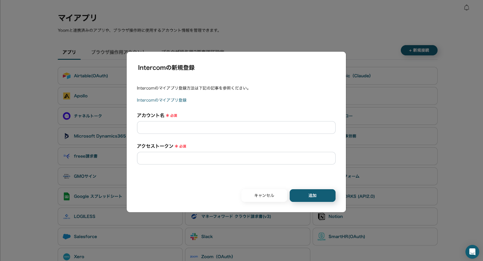 まず、IntercomとMicrosoft Teamsをマイアプリに連携します。