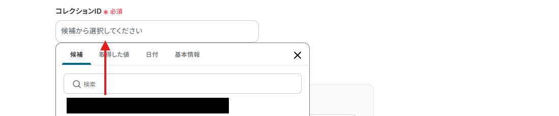 サイトIDとコレクションIDは、枠内をクリックし表示された候補から選択してください。