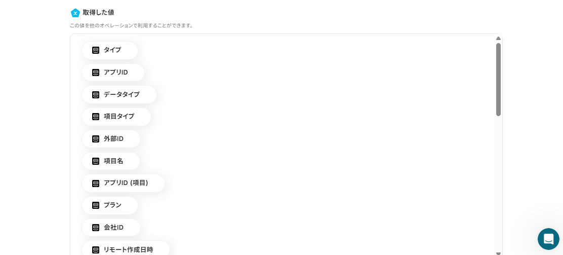 アウトプットは各アクションで取得でき、取得したアウトプットはそれ以降のアクションで活用可能です。つまり、ここで取得したアウトプットをWebflowに自動登録可能となります!詳しくは、こちらのヘルプページをご参照ください。