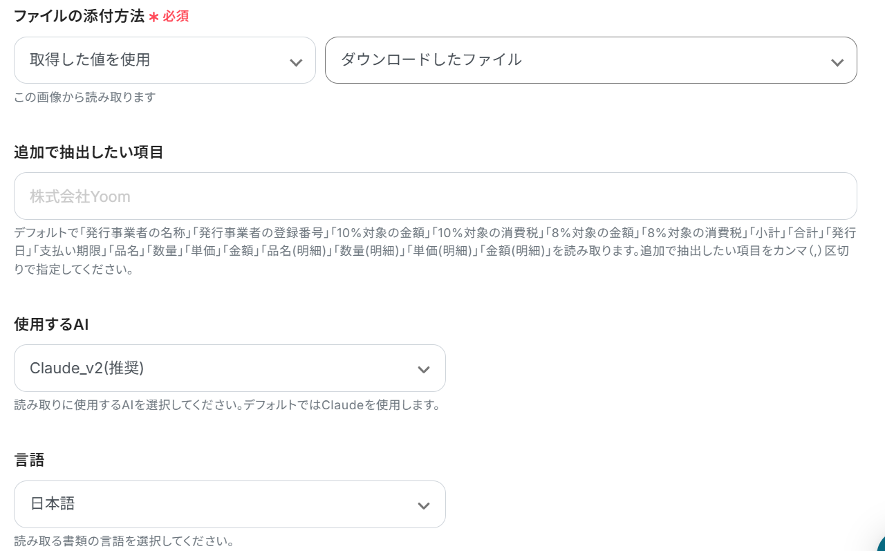 ・OCRや音声を文字起こしするAIオペレーションは、チームプラン・サクセスプラン限定の機能です。フリープランやミニプランでセットするとエラーになってしまうので、ご注意ください。