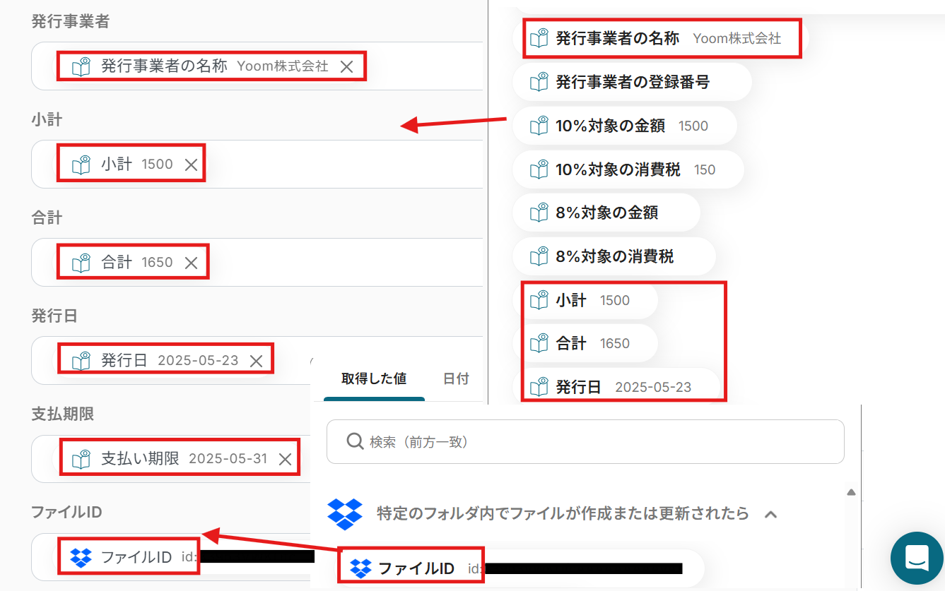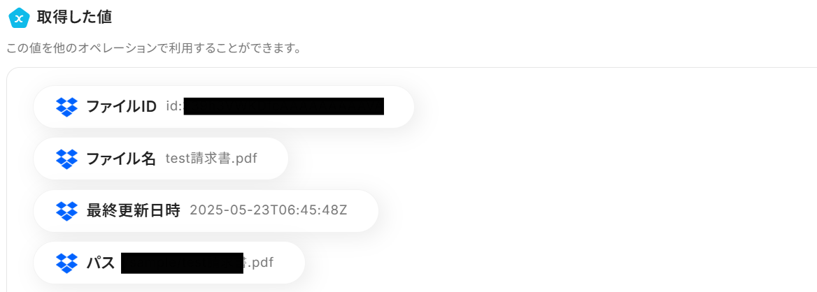 ここでDropboxに請求書というキーワードが含まれるファイルを追加します。
