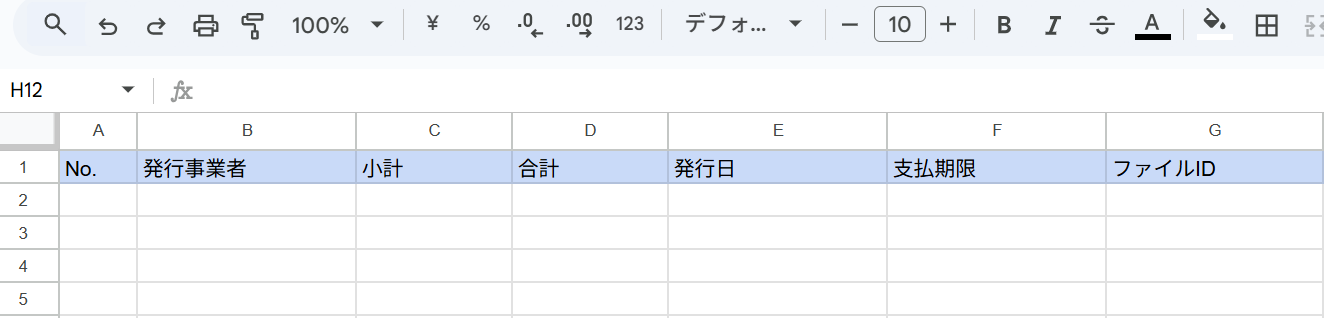 - 請求書情報を格納できるGoogle スプレッドシート。