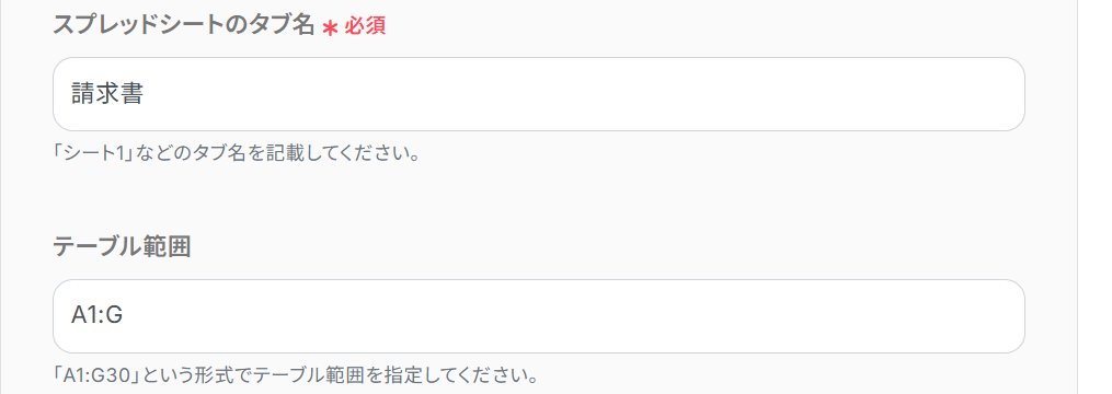 スプレッドシートID・タブ名:画像のように候補から選択してください。