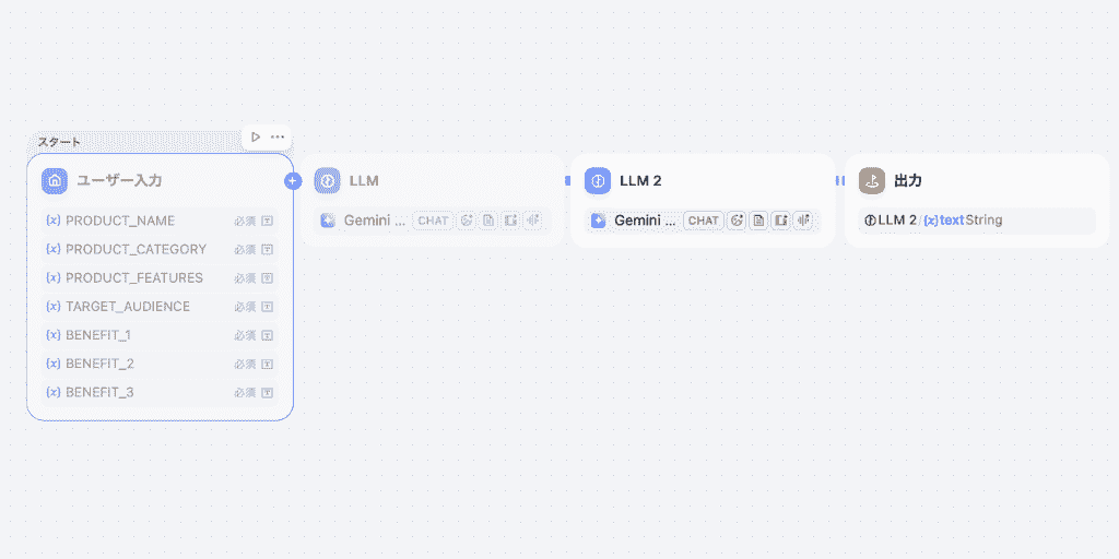 出力ノードで選択したコピー案が出力される、という構成になっています。