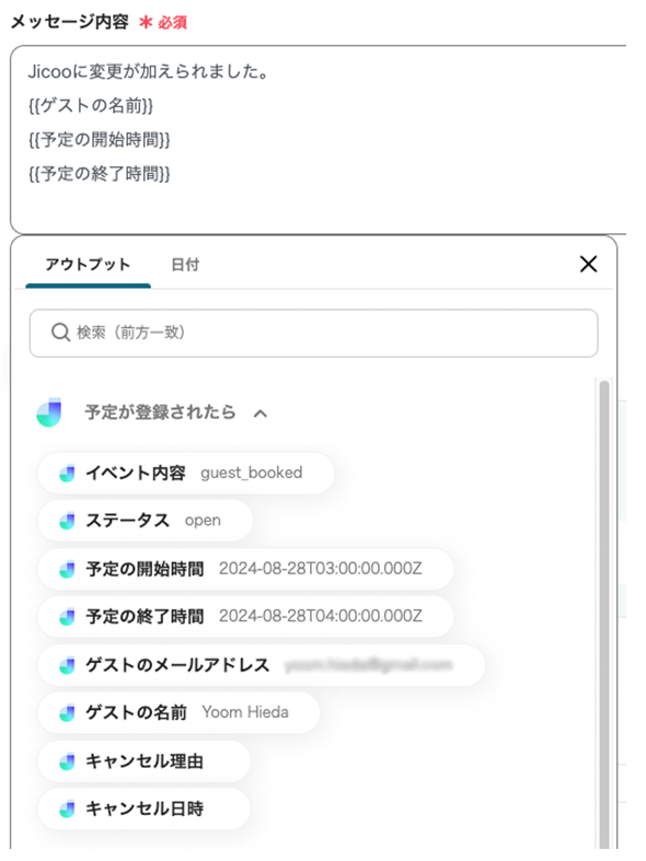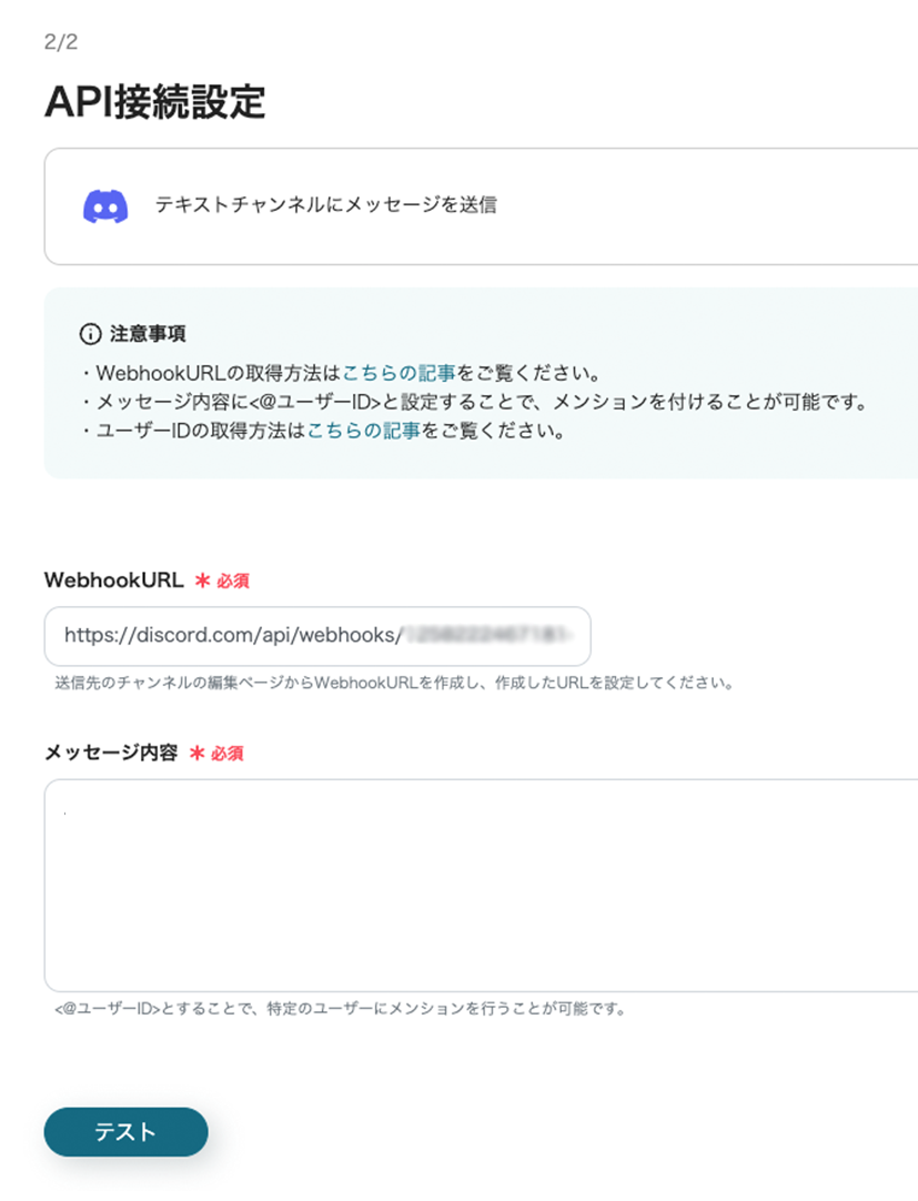 プロセスの2番目をクリックします。こちらでは連携するDiscordへ通知する内容を設定します。