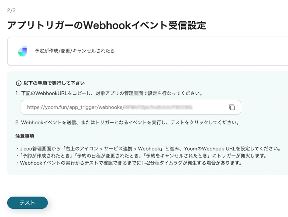 Yoomが発行するWebhookURLをJicooの管理画面に入力します。