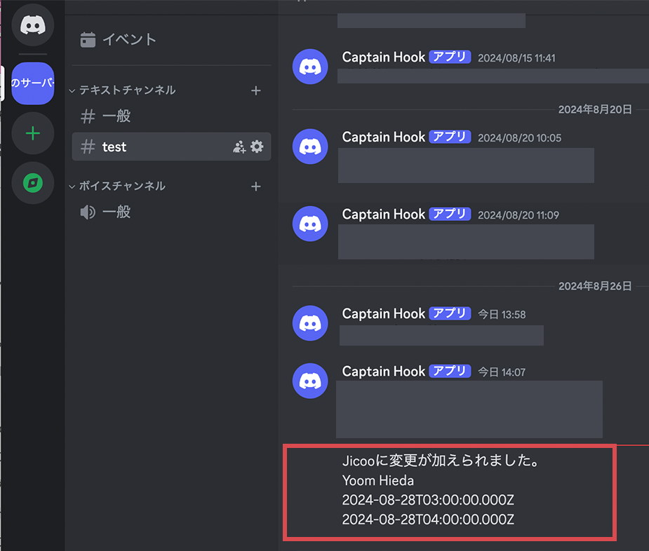 こちらで連携作業は完了しました!Discordで通知が確認できました。