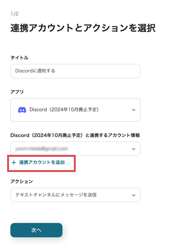 Discordと連携するアカウント情報:「+連携アカウントを追加」をクリック。