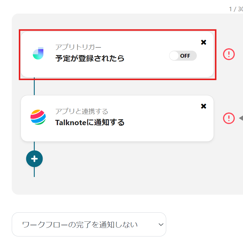 9)これで【Jicooで予定が登録されたら、Talknoteに通知する】というフローの完成です。
