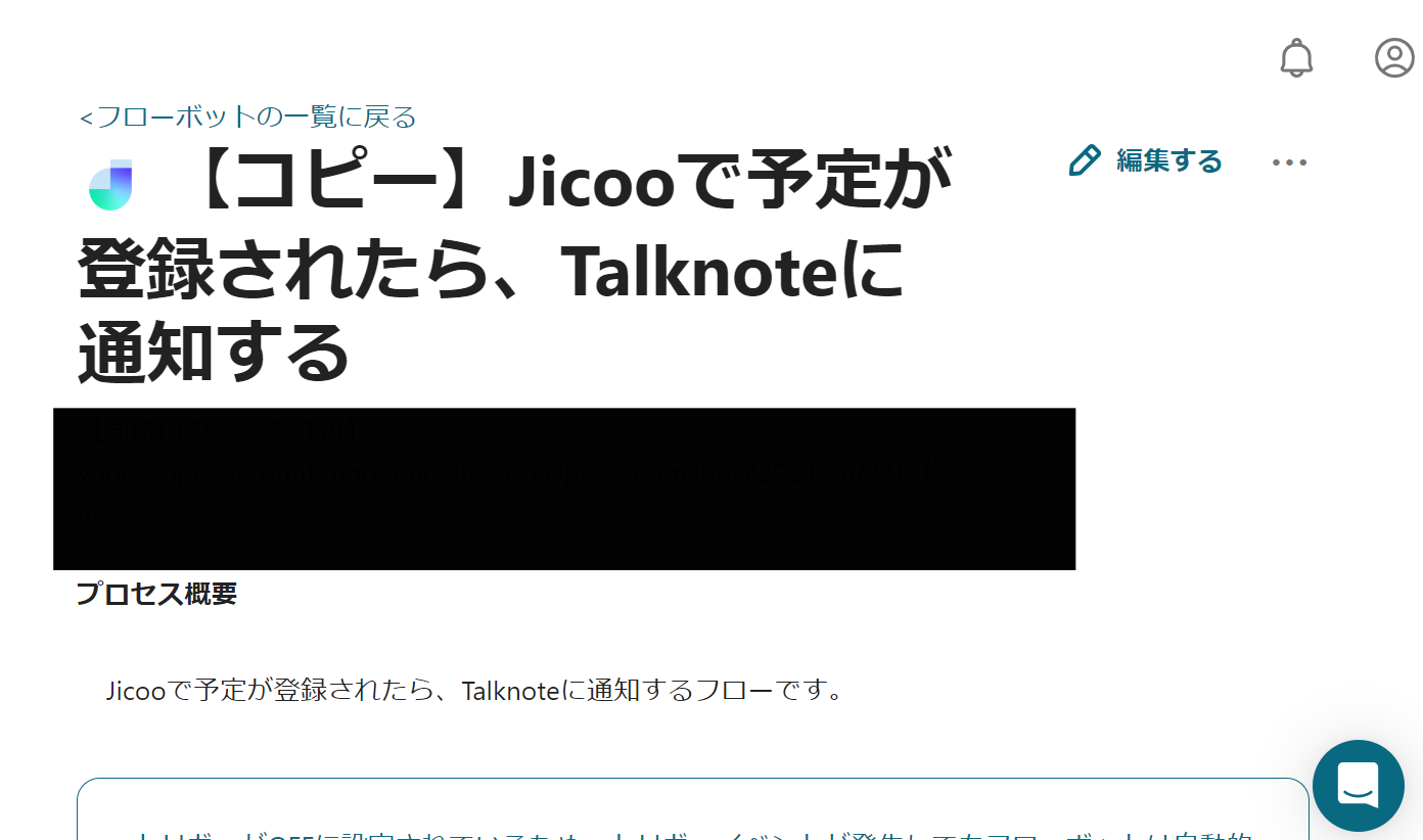 今回は、【Jicooで予定が登録されたら、Talknoteに通知する】というフローを作成します。