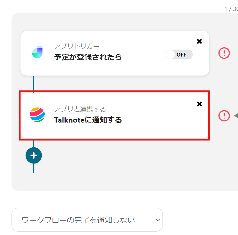 6)フローに戻ったら、「アプリと連携する Talknoteに通知する」のアイコンをクリックします。