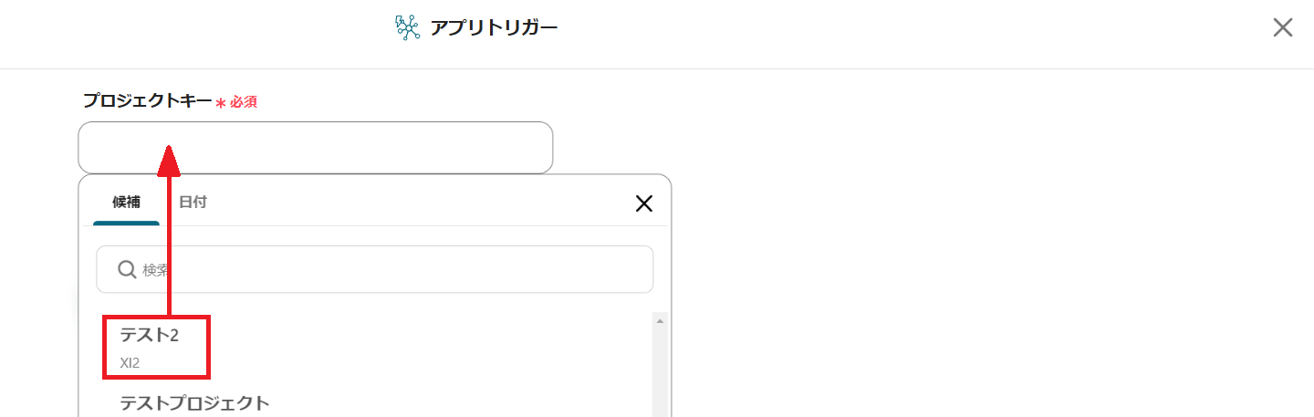 ボックスをクリックすることで作成済みのプロジェクトが一覧表示されます。
