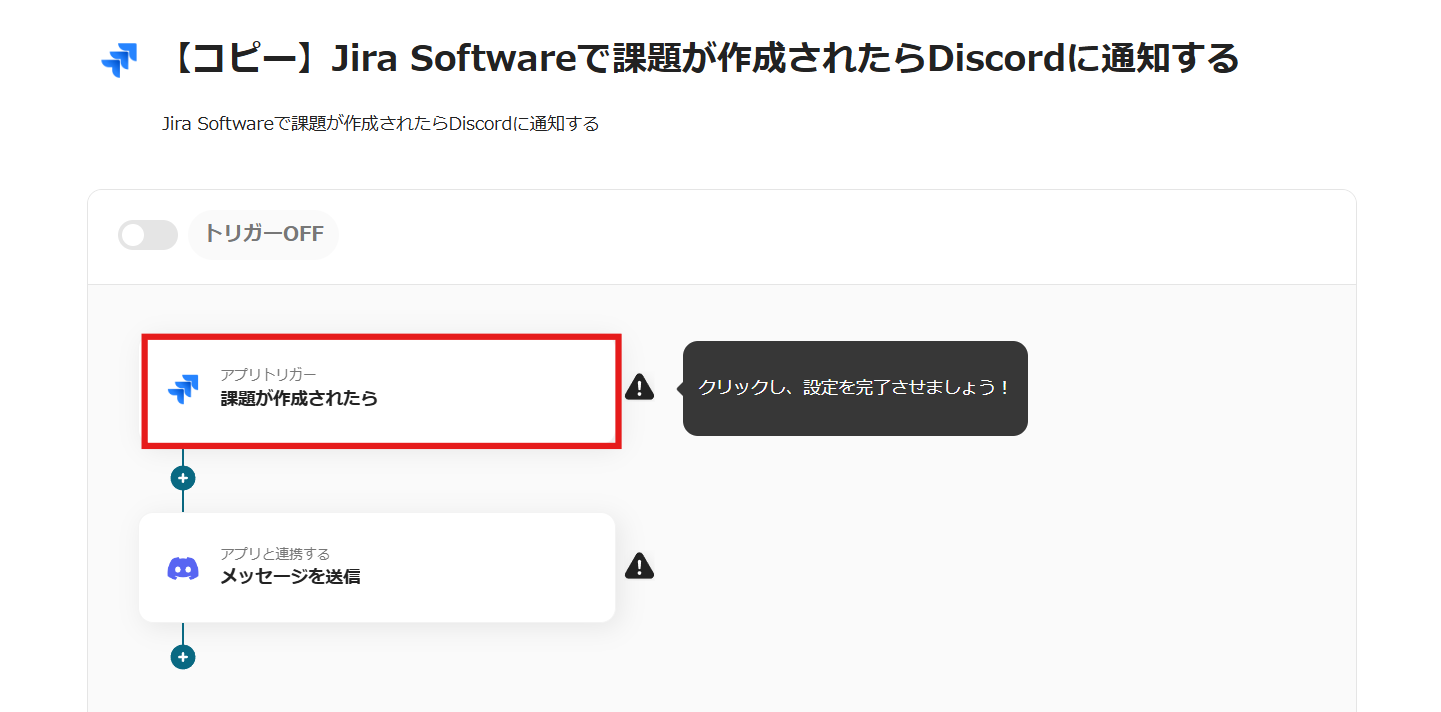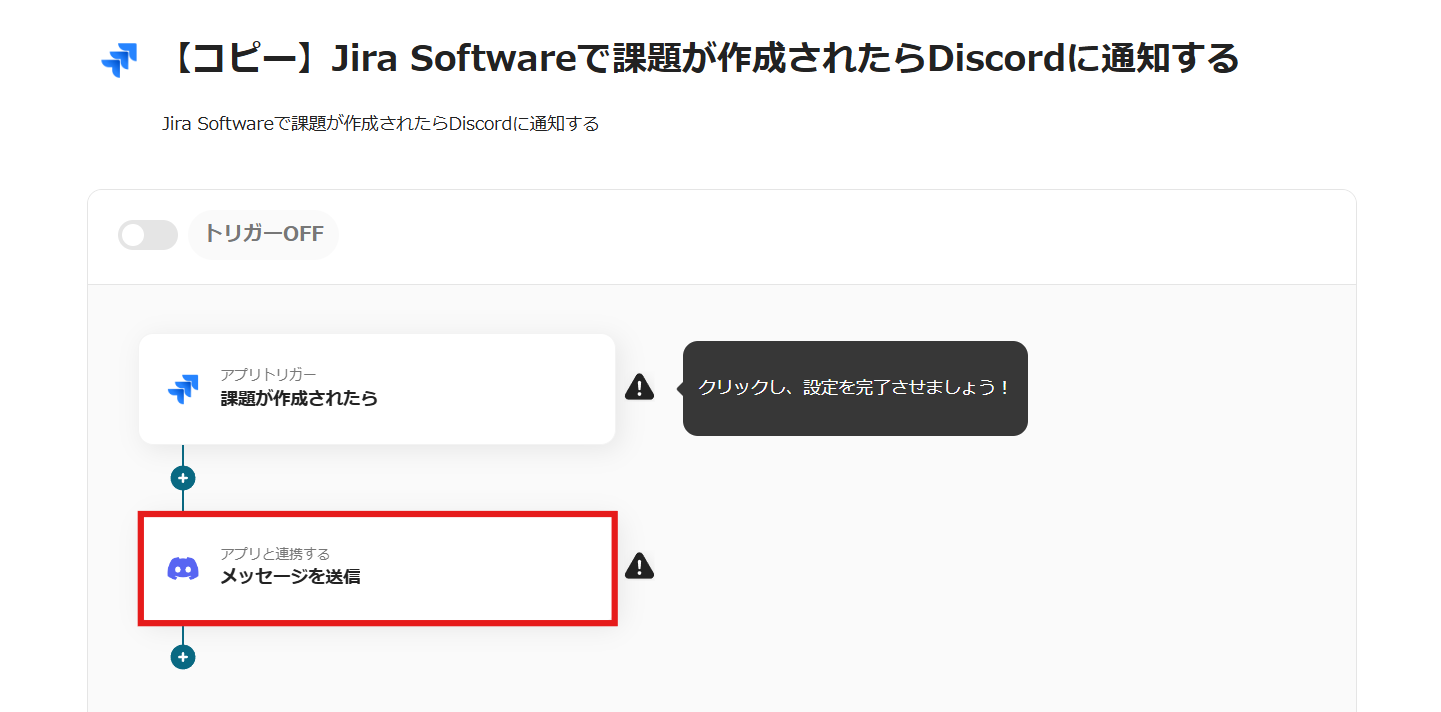 ・トリガーボタンをONにして、Jira SoftwareとDiscordの連携動作を確認