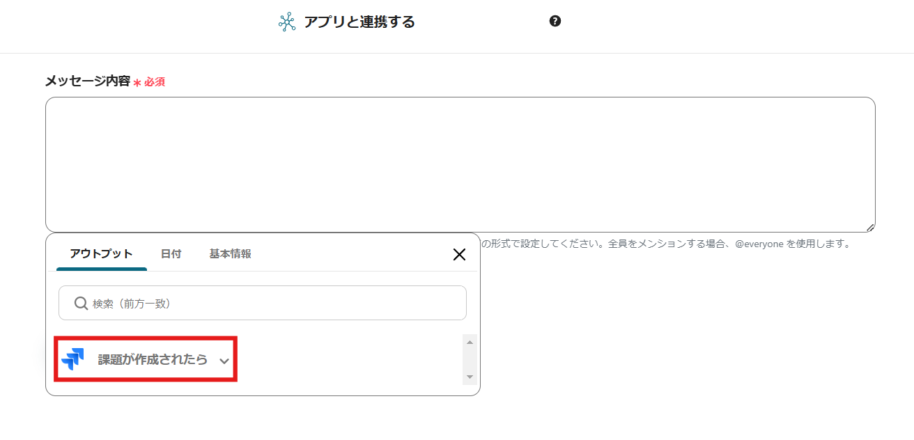 次にDiscordへ通知したいメッセージの内容を設定します。ボックスをクリックしましょう。