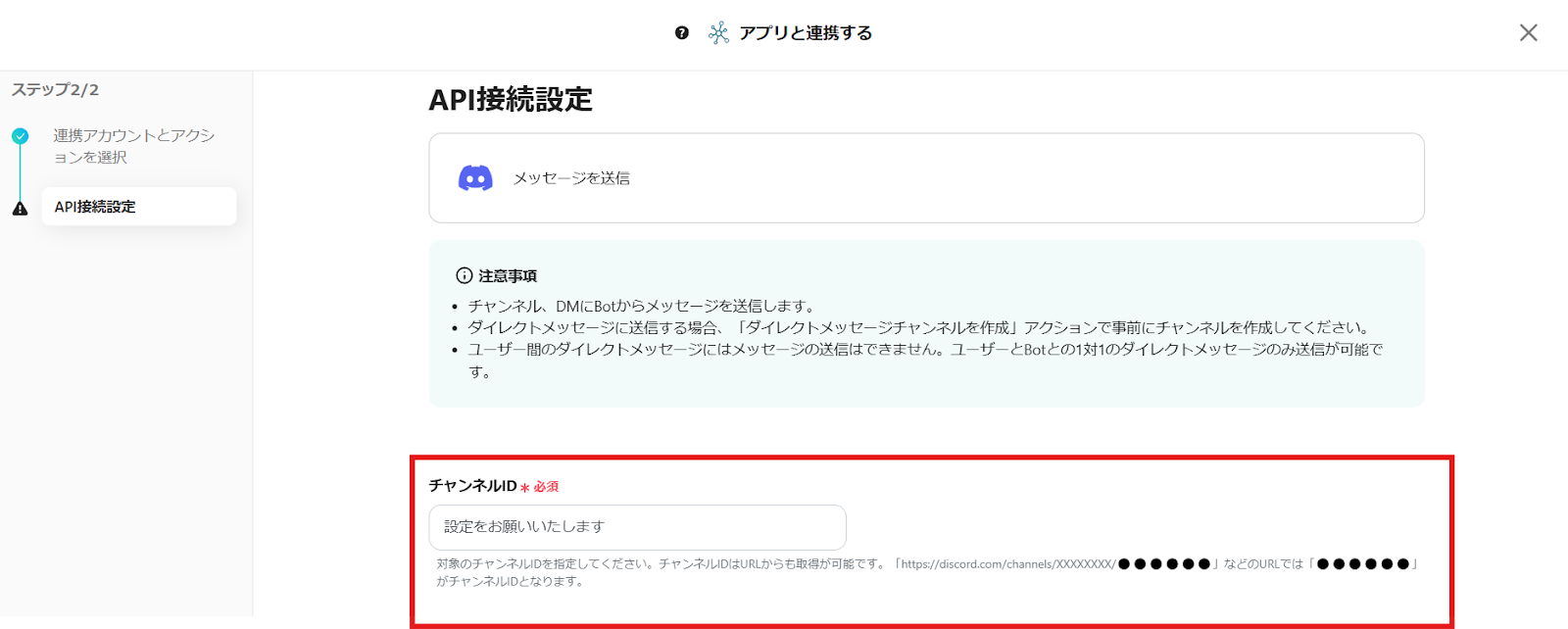 Jira Softwareの課題データを送信したいDiscordのチャンネルを設定します。