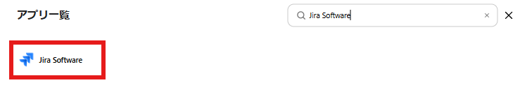 検索窓が表示されるのでJira Softwareと入力し候補をクリックします。