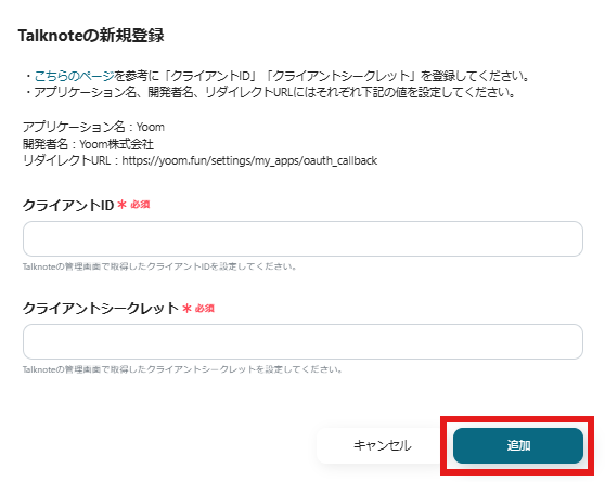 Talknoteの設定方法についてはこちらをご確認ください。
