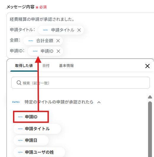 ジョブカン経費精算・ワークフローで申請が承認されたら、指定のSlackチャンネルに通知します。