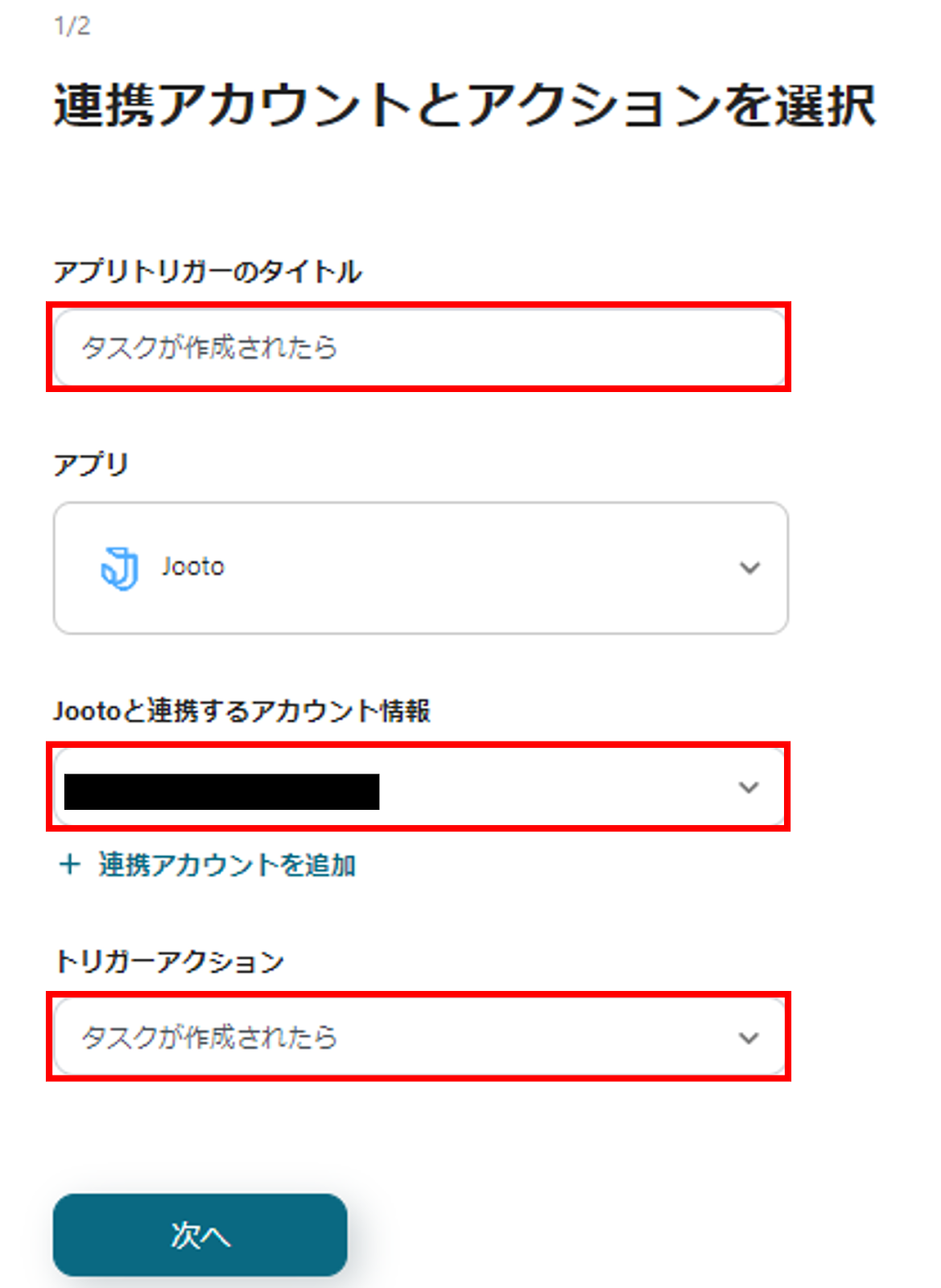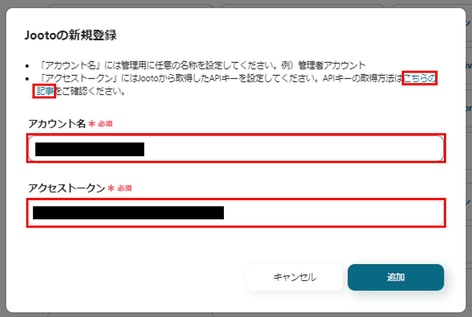 (3)Jootoと連携するアカウント情報が正しいかを確認