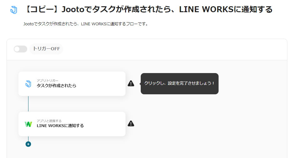 ここからは、「Jootoでタスクが作成されたら、LINE WORKSに通知する」フローの設定についてご紹介します。