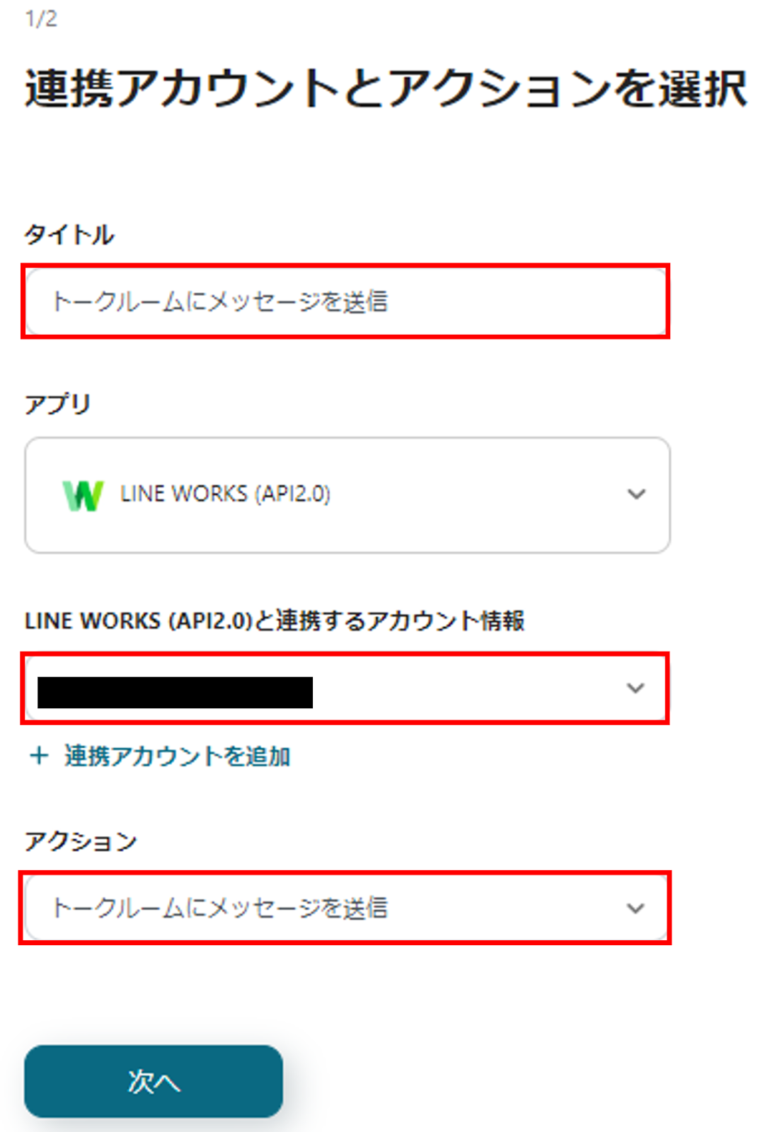 (12)アクションで「トークルームにメッセージを送信」を選択