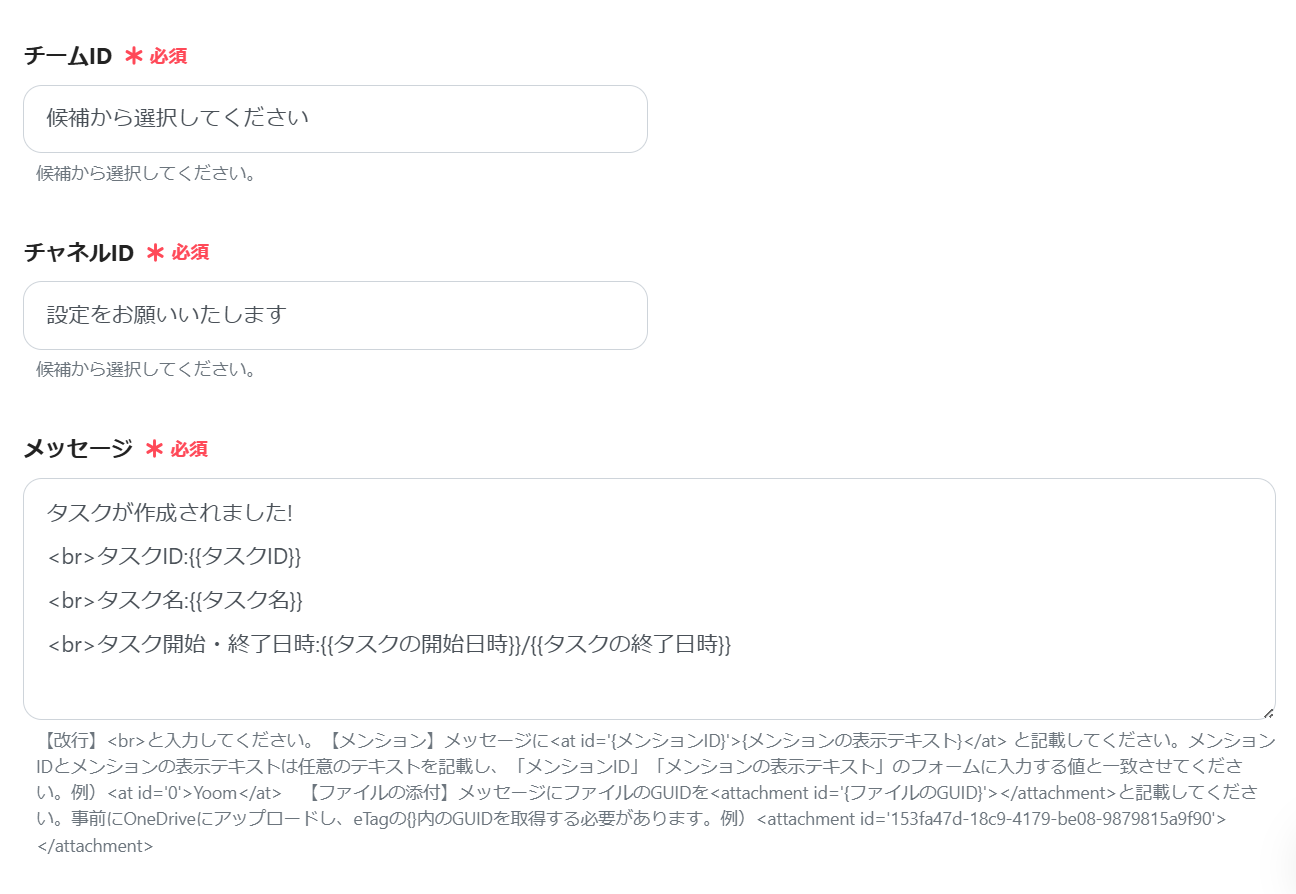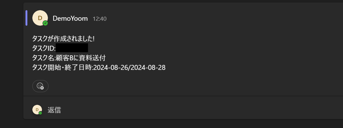 タスク開始と終了日時をメッセージに含めると、期限がわかりやすくなります。