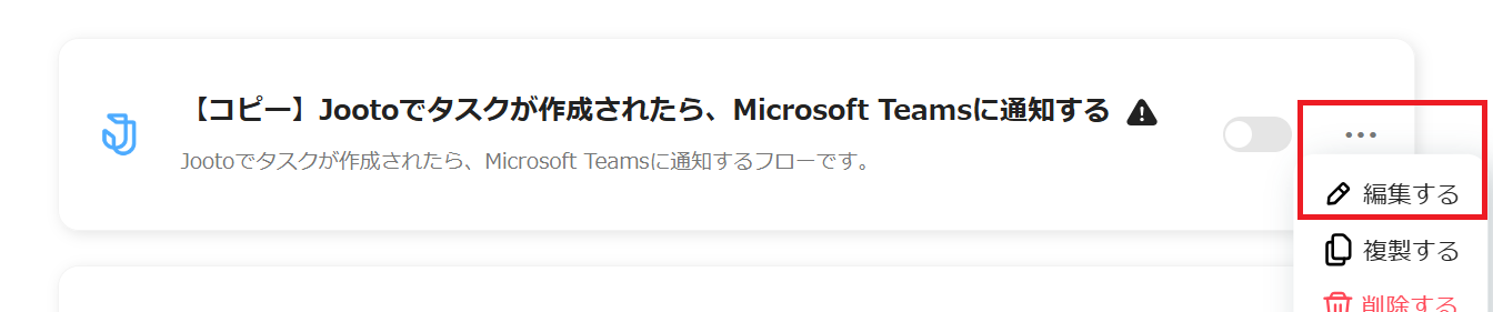 登録が完了したら、「Jootoでタスクが作成されたら、Microsoft Teamsに通知する」フローボットを作成してみましょう。