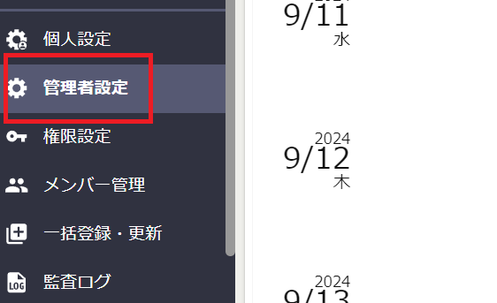 赤枠の管理者設定をクリックし、続けてタブからAPI利用を押します。