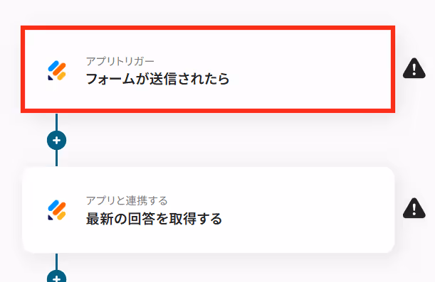 次に、Jotformに送信された回答を取得するアクションの設定を進めていきましょう。ここで回答を取得することで、Mailchimpに回答データを連携することが可能になります。