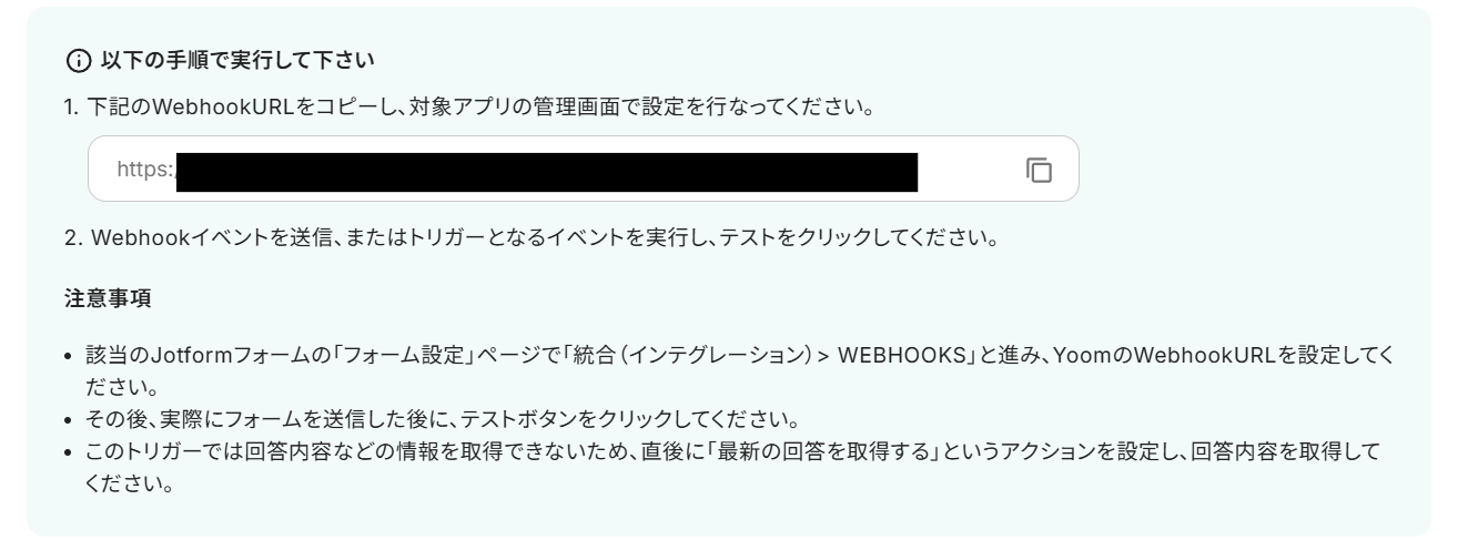 ・JotformのWebhook設定方法は下記をご参照ください。