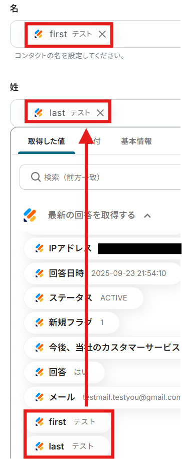 ステップ5:取得した回答からコンタクトに追加するアクションの設定