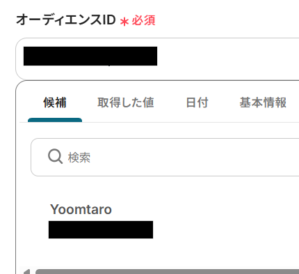 オーディエンスIDは、入力欄をクリックすると表示される候補から選びましょう。