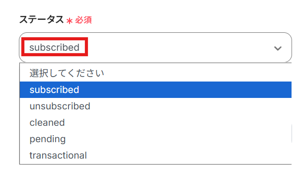 ステータスは選択肢の中から選びましょう。