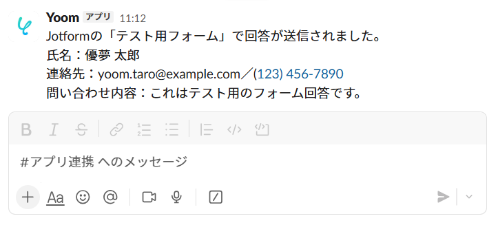Jotformの指定したフォームで回答を送信し、その旨がSlackに通知されていれば成功です。