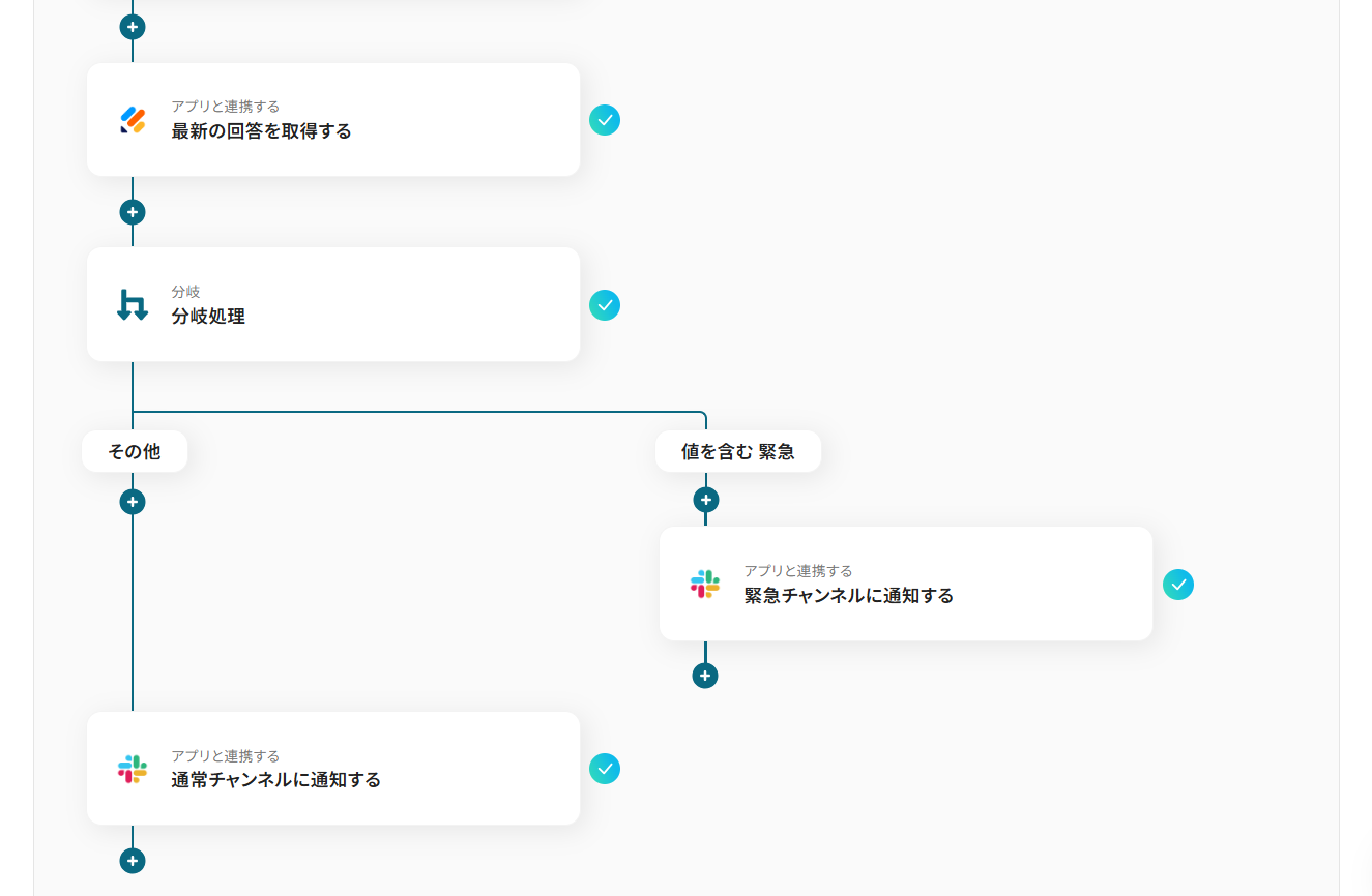 特定の選択肢が選択されている場合にだけ通知先やメッセージを変える、緊急性の高い問い合わせだけ通知するといった運用も可能です。