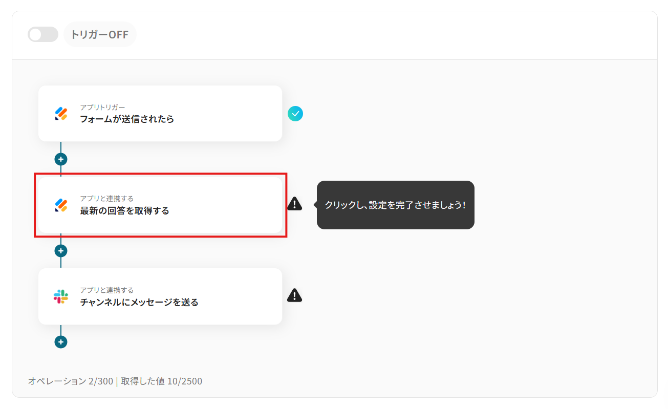 この記事では、先程ご紹介した「Jotformで回答が送信されたらSlackに通知する」フローを作成します。