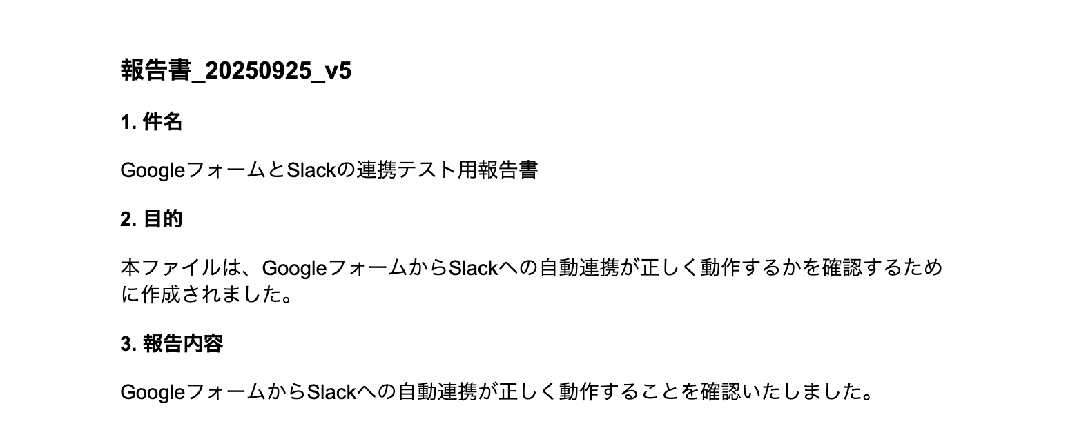 ここで取得した値を次の設定で活用していく必要がありますが、仕様上Googleフォームの回答項目(担当者名など)は現段階で空欄のままです。