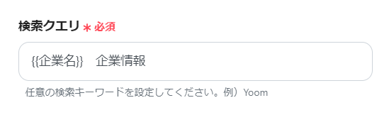 これにより、JUST.DBの「企業名」部分に企業名を追加することで、「企業名 企業情報」という検索を自動で行うようになります。