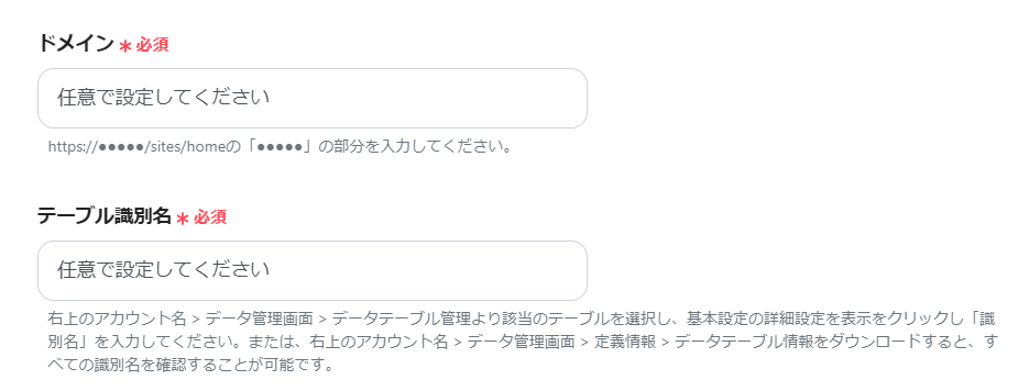 ボックス下部の補足に従い、必須項目を入力しましょう。