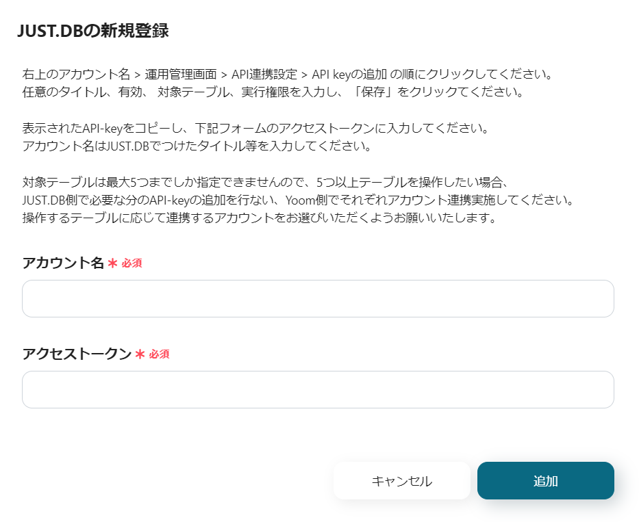どういった情報をJUST.DBに追加していきたいのか、具体的な内容を記載しましょう。