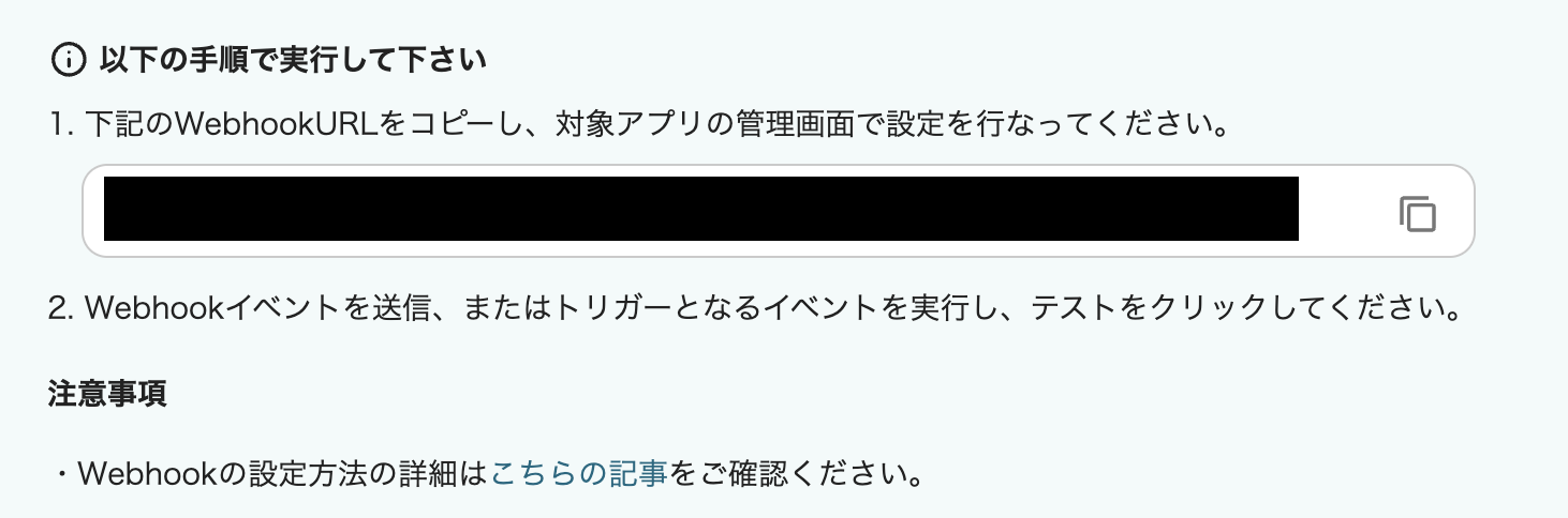 (4)次の画面では、WebhookURLをコピーし、管理画面で設定を行う必要があります。