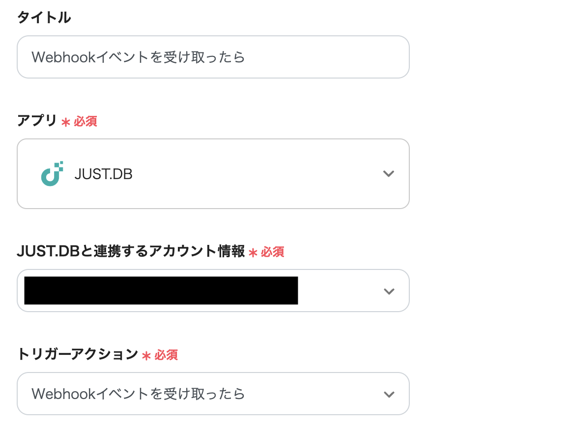 (1)まず、JUST.DBのアプリトリガーを設定します。