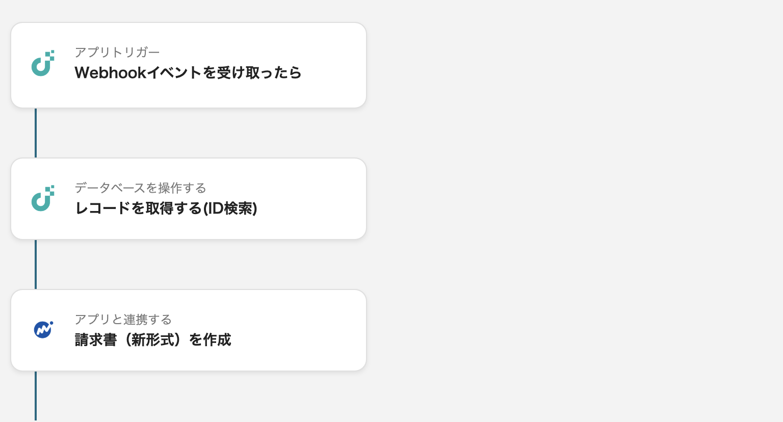 JUST.DBでレコードが更新されたことをJUST.DBのAPIを利用して受け取り、マネーフォワード クラウド請求書の提供するAPIを用いて、更新情報の内容をもとにマネーフォワード クラウド請求書で請求書を発行することで実現が可能です。