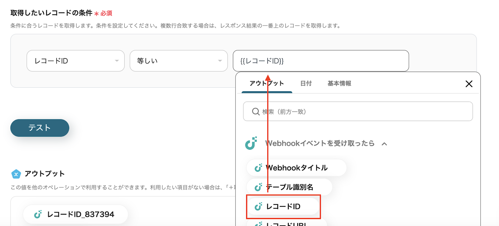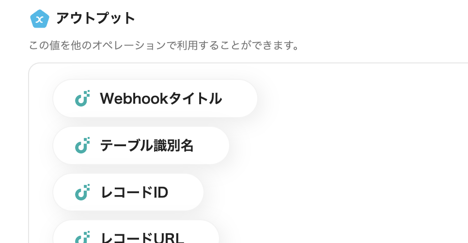 アウトプット情報は、「この値を他のオペレーションで利用することができます。」という注釈の通り、この後のステップで引用・活用できます。