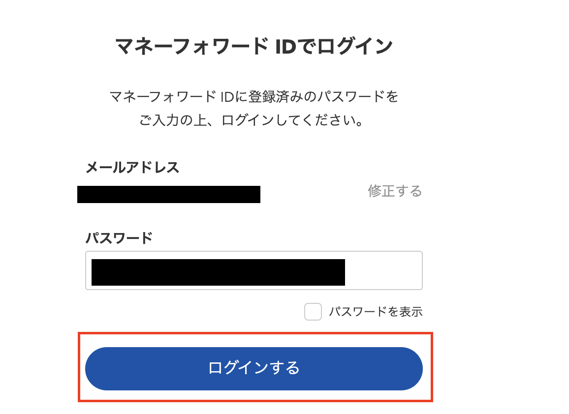 (5)マネーフォワード クラウド請求書で設定しているメールアドレスを入力し、[ログインする]をクリックします。