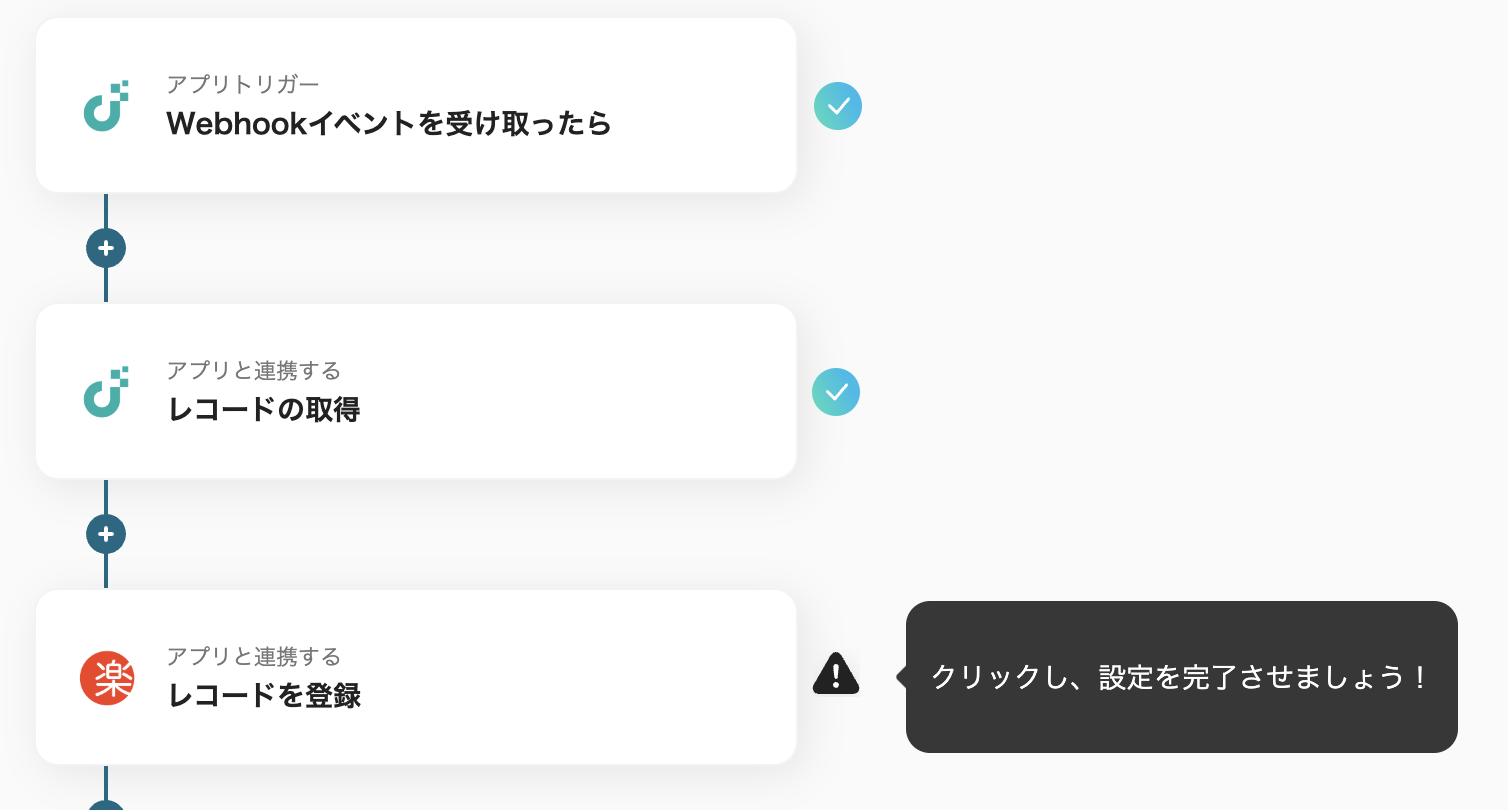 (1)最後に、3つ目のアクション「レコードを登録」をクリックします。