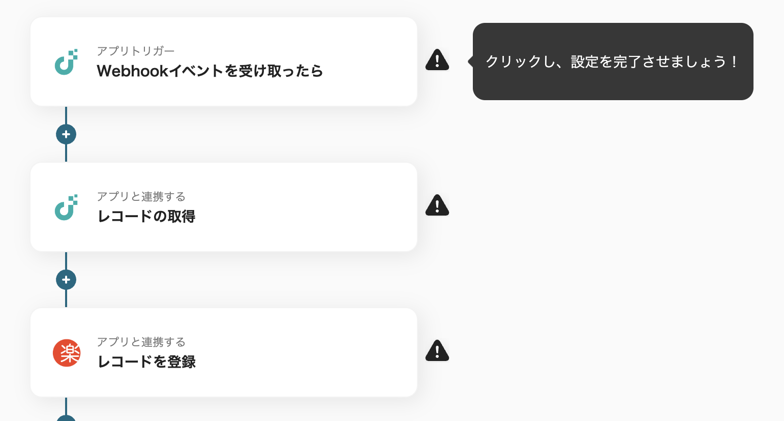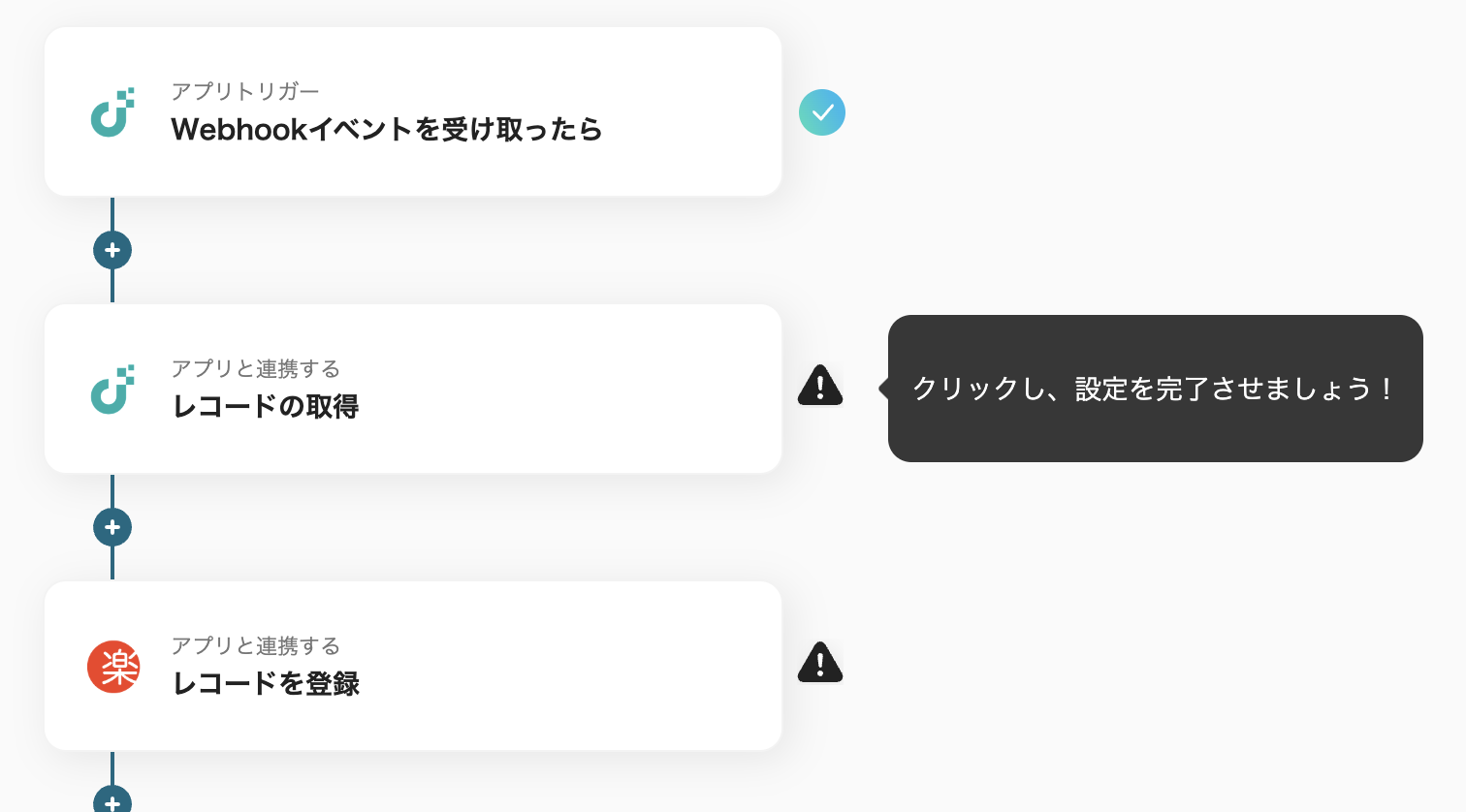 ※楽楽販売はチームプラン・サクセスプランでのみご利用いただけるアプリとなっております。フリープラン・ミニプランの場合は設定しているフローボットのオペレーションやデータコネクトはエラーとなりますので、ご注意ください。