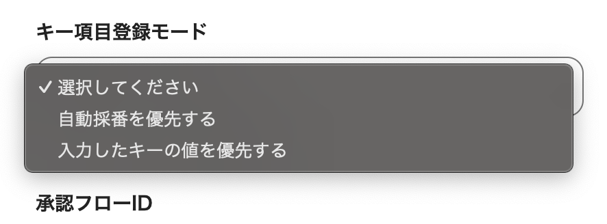 (4)「キー項目登録モード」は、プルダウンから設定内容を選択しましょう。(設定は任意です。)